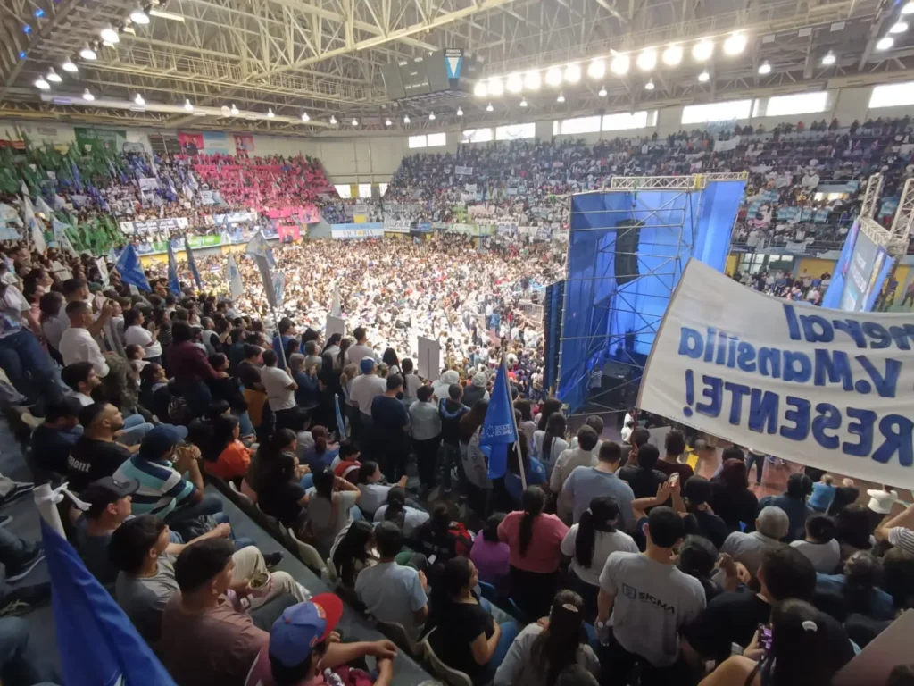 Durante su discurso, Gildo Insfrán recorrió distintos momentos de la historia argentina, desde el primer empréstito con Inglaterra en 1824 hasta el golpe de Estado de 1930, para trazar un paralelismo con la actualidad. “Ese empréstito se pagó 17 veces más y fue recién en 1904. Así se maneja la oligarquía de nuestra patria. Después, cuando hubo gobiernos populares, también los incomodaba esa clase”, señaló.