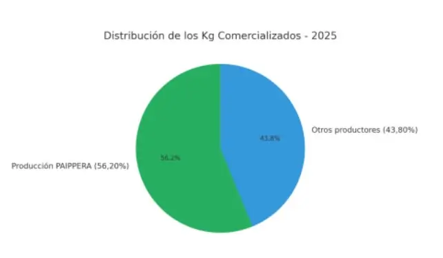 La producción paippera, a través de cuatro consorcios y grupos de productores organizados, tuvo una destacada participación, aportando 138.658 kg, equivalentes al 56,20% del total comercializado. Estos alimentos generaron $112.689.144 en ingresos para los trabajadores del campo, provenientes de distintas localidades.