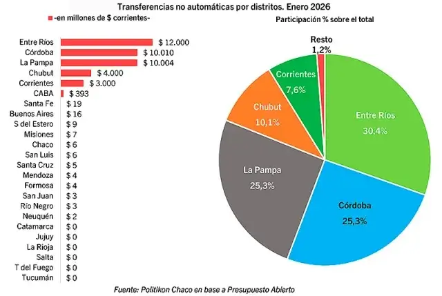 El ajuste no es un fenómeno aislado de la provincia, sino parte de una contracción federal generalizada. En enero, el total de transferencias no automáticas pagadas a las provincias y CABA sumó $39.491 millones, lo que representa una caída real del 65,4% en comparación con el mismo mes del año anterior.